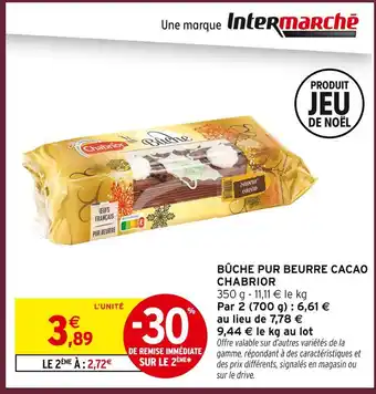 Actuellement en offre chez Intermarché : Chabrior bûche pur beurre cacao ✅ Valable du 23-12 au 31-12.