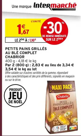 Chabrior petits pains grillés au blé complet : offres et promos Intermarché à découvrir