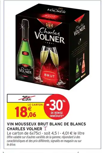 Offre CHARLES VOLNER Vin mousseux brut blanc de blancs chez Intermarché
