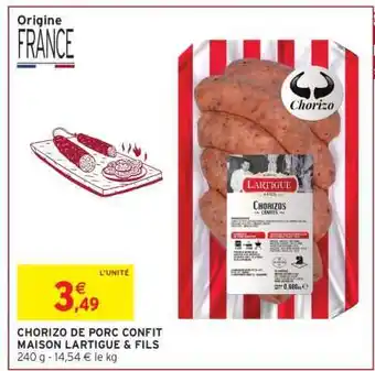 CHORIZO DE PORC CONFIT MAISON LARTIGUE & FILS : offres et promos Intermarché à découvrir