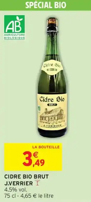 Actuellement en offre chez Intermarché : Cidre bio brut j.verrier ✅ Valable du 17-02 au 1-03.