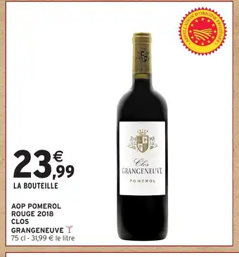 Actuellement en offre chez Intermarché : CLOS GRANGENEUVE Aop pomerol rouge 2018 ✅ Valable du 17-03 au 29-03.