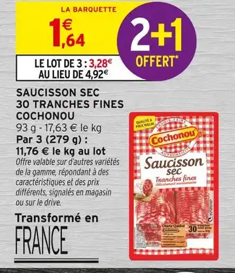 Actuellement en offre chez Intermarché : Cochonou saucisson sec 30 tranches fines ✅ Valable du 23-12 au 31-12.