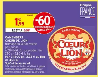 Actuellement en offre chez Intermarché : Coeur de lion camembert ✅ Valable du 6-01 au 18-01.