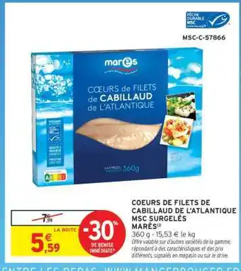 COEURS DE FILETS DE CABILLAUD DE L'ATLANTIQUE MSC SURGELÉS MARÉ(S) offres et promotions en ligne chez Intermarché