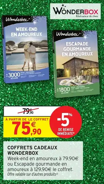 Actuellement en offre chez Intermarché : Coffrets cadeaux wonderbox ✅ Valable du 23-12 au 31-12.