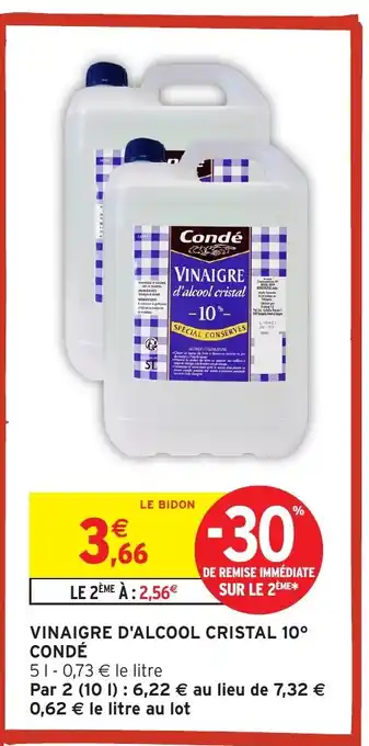 Actuellement en offre chez Intermarché : CONDÉ Vinaigre d'alcool cristal 10° ✅ Valable du 13-01 au 25-01.