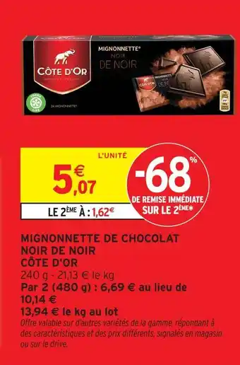 Côte d'or mignonnette de chocolat noir de noir offres et promotions en ligne chez Intermarché