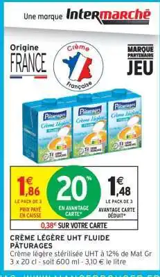 Actuellement en offre chez Intermarché : CRÈME LÉGÈRE UHT FLUIDE PÂTURAGES ✅ Valable du 20-01 au 1-02.