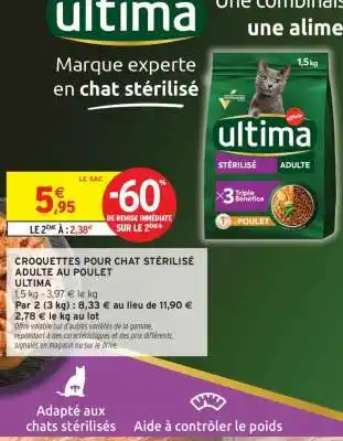 CROQUETTES POUR CHAT STÉRILISÉ ADULTE AU POULET ULTIMA offres et promotions en ligne chez Intermarché