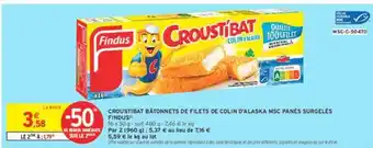 Offre Croustibat Bâtonnets de Filets de Colin d'Alaska MSC Panés Surgelés Findus chez Intermarché