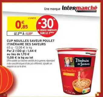 Actuellement en offre chez Intermarché : CUP NOUILLES SAVEUR POULET ITINÉRAIRE DES SAVEURS ✅ Valable du 10-02 au 22-02.