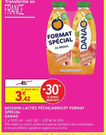 Actuellement en offre chez Intermarché : DANAO Boisson lactée pêche/abricot format spécial ✅ Valable du 30-12 au 11-01.