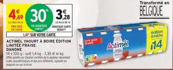 Actuellement en offre chez Intermarché : Danone actimel yaourt à boire édition limitée fraise ✅ Valable du 3-03 au 15-03.