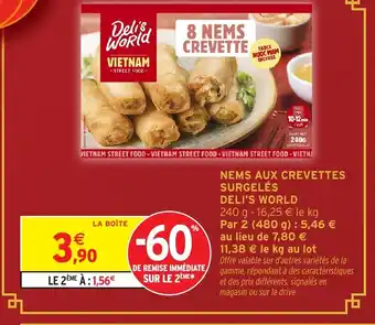Actuellement en offre chez Intermarché : DELI'S WORLD Nems aux crevettes surgelés ✅ Valable du 10-02 au 22-02.