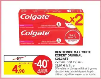 Offre Dentifrice Max White Expert Original Colgate chez Intermarché