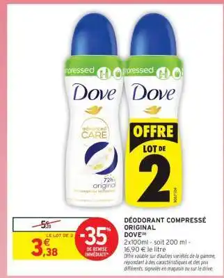 Actuellement en offre chez Intermarché : DÉODORANT COMPRESSÉ ORIGINAL DOVE ✅ Valable du 20-01 au 1-02.