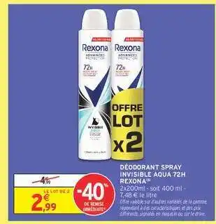 Actuellement en offre chez Intermarché : DÉODORANT SPRAY INVISIBLE AQUA 72H REXONA ✅ Valable du 6-01 au 18-01.