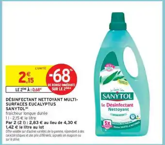 Désinfectant Nettoyant Multi-Surfaces Eucalyptus Sanytol offres et promotions en ligne chez Intermarché