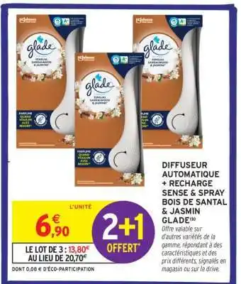 Y a-t-il une promotion sur DIFFUSEUR AUTOMATIQUE + RECHARGE SENSE & SPRAY BOIS DE SANTAL & JASMIN GLADE la semaine prochaine chez Intermarché ?