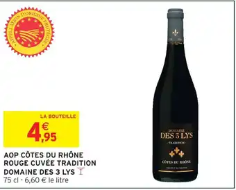 Domaine des 3 lys aop côtes du rhône rouge cuvée tradition offres et promotions en ligne chez Intermarché