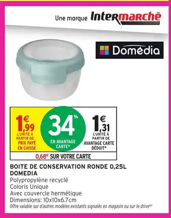 Actuellement en offre chez Intermarché : DOMEDIA Boite de conservation ronde ✅ Valable du 30-12 au 11-01.