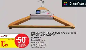 Offre Domédia lot de 3 cintres en bois avec crochet métallique rotatif chez Intermarché