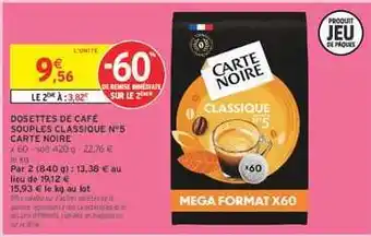 DOSETTES DE CAFÉ SOUPLES CLASSIQUE N°5 CARTE NOIRE : offres et promos Intermarché à découvrir