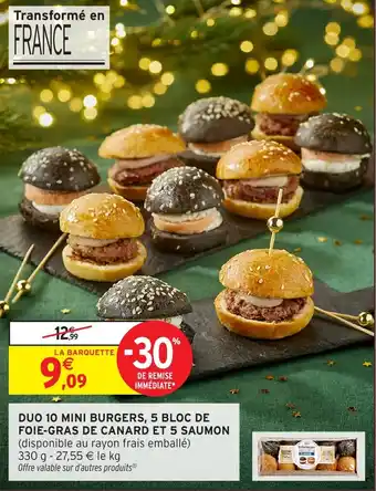 Offre Duo 10 mini burgers 5 bloc de foie-gras de canard et 5 saumon chez Intermarché