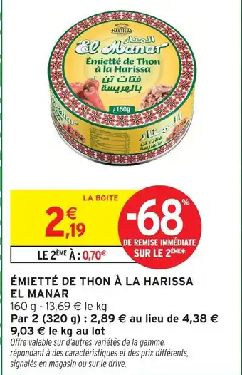 Offre El manar émiétté de thon à la harissa chez Intermarché