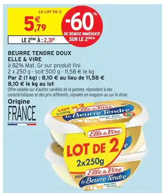 Offre Elle & vire beurre tendre doux chez Intermarché