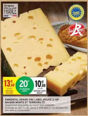 Offre EMENTAL GRAND CRU LABEL ROUGE & IGP MAISON MONTS ET TERRITOIRES chez Intermarché