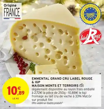 Actuellement en offre chez Intermarché : Emmental grand cru label rouge & igp maison monts et terroirs ✅ Valable du 23-12 au 31-12.