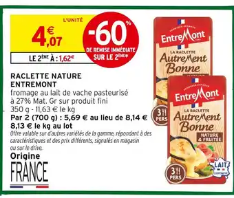 Actuellement en offre chez Intermarché : Entremont raclette nature ✅ Valable du 13-01 au 25-01.