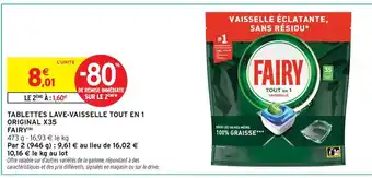 Actuellement en offre chez Intermarché : Fairy tablettes lave-vaisselle tout en 1 original x35 ✅ Valable du 8-04 au 19-04.