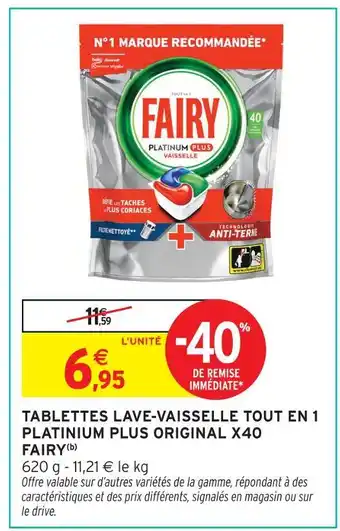 Offre Fairy tablettes lave-vaisselle tout en 1 platinum plus original x40(b) chez Intermarché