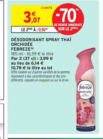 Actuellement en offre chez Intermarché : FEBREZE Désodorisant spray thaï orchidée ✅ Valable du 24-03 au 6-04.