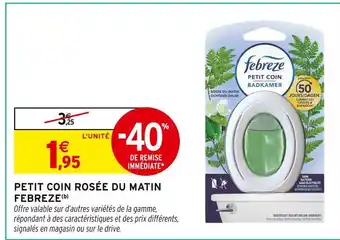 Actuellement en offre chez Intermarché : Febreze petit coin rosée du matin ✅ Valable du 16-12 au 28-12.