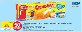 Actuellement en offre chez Intermarché : Findus - croustibat batônnes de filets de colin d'alaska msc panés surgelés ✅ Valable du 3-03 au 15-03.