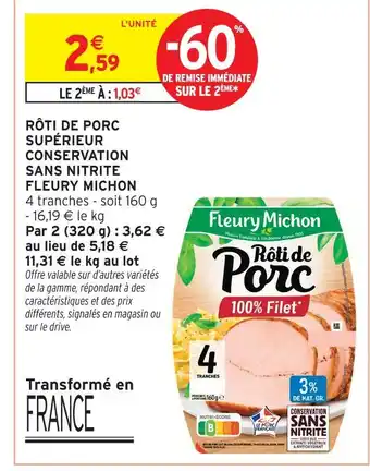 Actuellement en offre chez Intermarché : Fleury michon rôti de porc supérieur conservation sans nitrite ✅ Valable du 21-04 au 3-05.