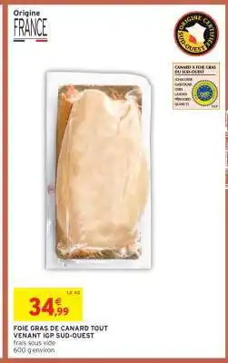 FOIE GRAS DE CANARD TOUT VENANT IGP SUD-OUEST offres et promotions en ligne chez Intermarché