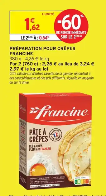 Actuellement en offre chez Intermarché : Francine préparation pour crêpes ✅ Valable du 20-01 au 1-02.