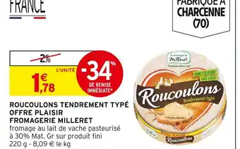 Actuellement en offre chez Intermarché : Fromagerie milleret roucoulons tendrement typé offre plaisir ✅ Valable du 6-01 au 18-01.