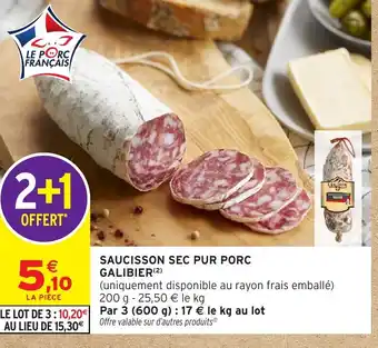 Offre GALIBIER Saucisson sec pur porc chez Intermarché