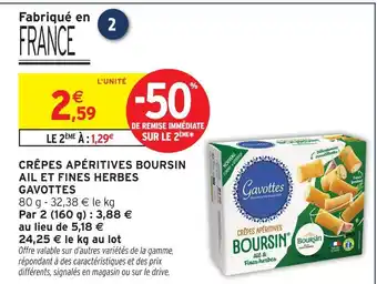 Actuellement en offre chez Intermarché : Gavottes crêpes apéritives boursin ail et fines herbes ✅ Valable du 3-02 au 15-02.