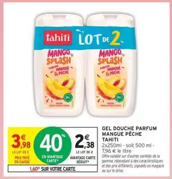 Actuellement en offre chez Intermarché : GEL DOUCHE PARFUM MANGUE PÊCHE TAHITI ✅ Valable du 8-04 au 19-04.