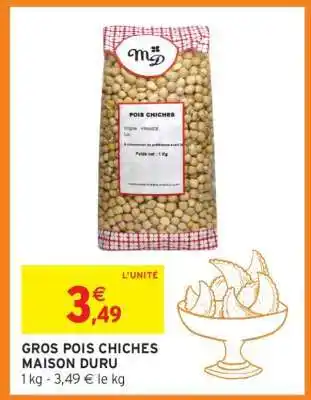 Actuellement en offre chez Intermarché : GROS POIS CHICHES MAISON DURU ✅ Valable du 17-02 au 22-02.