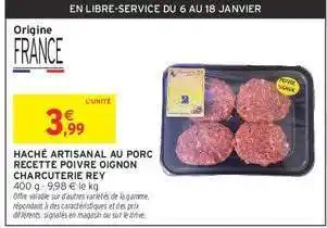 HACHÉ ARTISANAL AU PORC RECETTE POIVRE OIGNON CHARCUTERIE REY offres et promotions en ligne chez Intermarché