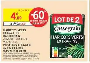 Actuellement en offre chez Intermarché : Haricots Verts Extra-Fins Cassegrain ✅ Valable du 28-04 au 10-05.