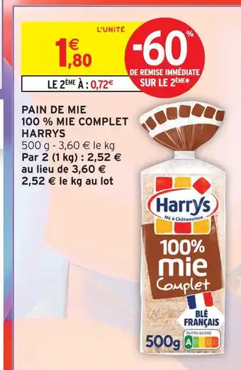 Actuellement en offre chez Intermarché : Harrys pain de mie 100% mie complet ✅ Valable du 3-02 au 15-02.